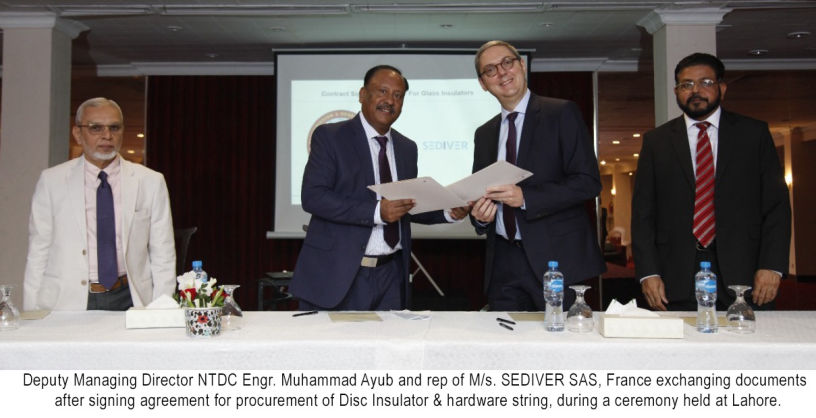 Lahore (13 Nov 2021)- National Transmission and Despatch Company Limited (NTDC) will procure Disc Insulator & hardware string amounting to Euro 10,800,393 for 500kV SECL (Thar Block-I) to Matiari Double Circuit transmission line for evacuation of power from 1320 MW SECL Coal Power Plant. The Contract Signing Ceremony for procurement of said material was held at a local hotel in Lahore, where Deputy Managing Director NTDC Engr. Muhammad Ayub and reps of M/s. SEDIVER SAS, France signed the contract. The ceremony was attended by the high ranked officers on both sides and French experts. Deputy Managing Director Mr. Muhammad Ayub chaired the occasion alongwith Deputy Managing Director Mr. Safdar Ali. A large number of General Managers, Chief Engineers and young Engineers were present on the occasion. While addressing the ceremony, DMD Engr. Muhmmad Ayub expressed that quality of hardware and insulators is one of the critical factor in tripping of transmission lines. NTDC is making efforts to improve its design and specifications besides enhancing cooperation with leading manufacturers and industry experts to meet modern day challenges. M/s. SEDIVER SAS, France is one of the renowned overhead insulators manufacturer in the World. The Leading Industry experts from the France also delivered a technical presentation followed by question answer session.